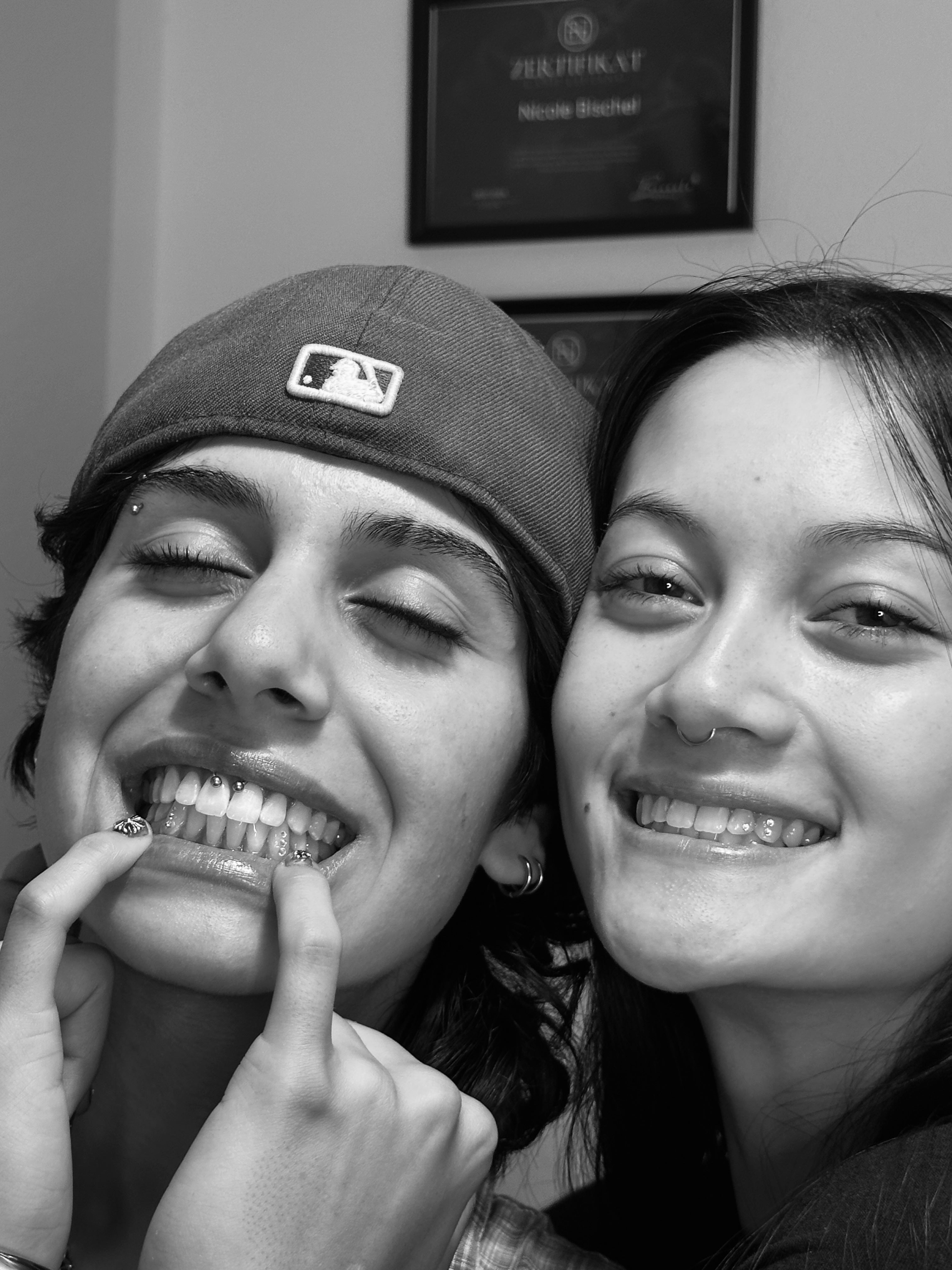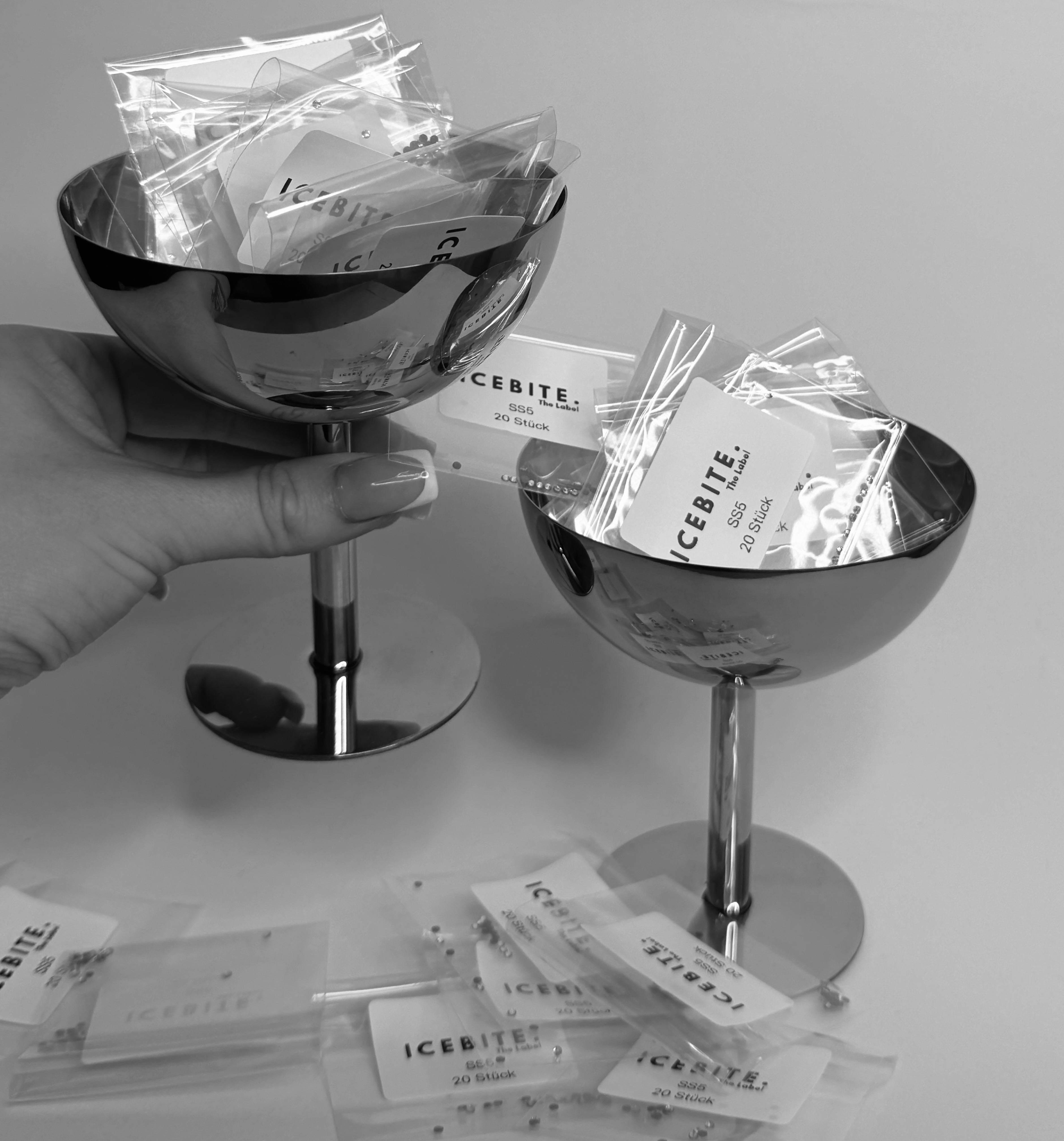Unsere Schmuckstücke bestehen aus erstklassigen, hypoallergenen Materialien und wurden speziell für den sicheren Einsatz im Mundbereich entwickelt. Sie lassen sich mühelos anbringen und rückstandslos entfernen - ganz ohne Schäden am Zahn.
